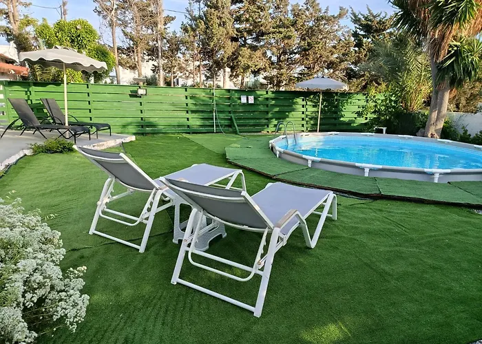 La cocina completa se completa con nevera y un horno. Para cenar in situ, los huéspedes también tienen acceso a servicio de tetera/cafetera. El aeropuerto más cercano es Internacional de Rodas-Diágoras, situado a 65 km.